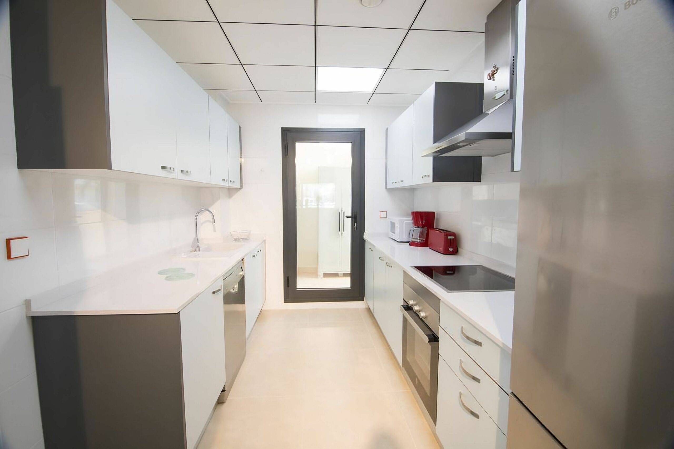 Podrá disfrutar de una decoración exquisita, un espacioso salón comedor con Smart TV de gran pantalla plana y canales en francés y español. Dos habitaciones dobles, una de ellas con cama de matrimonio (150cm) con baño completo en suite, la otra habitación con dos camas individuales (90cm). Las dos habitaciones cuentan con armarios empotrados y mucha luz natura. El apartamento cuenta además con otro baño completo, cocina cerrada con galería. El apartamento vacacional en Denia Marinas km1 cuenta con WIFI, aire acondicionado por conductos, calefacción central y totalmente equipado.